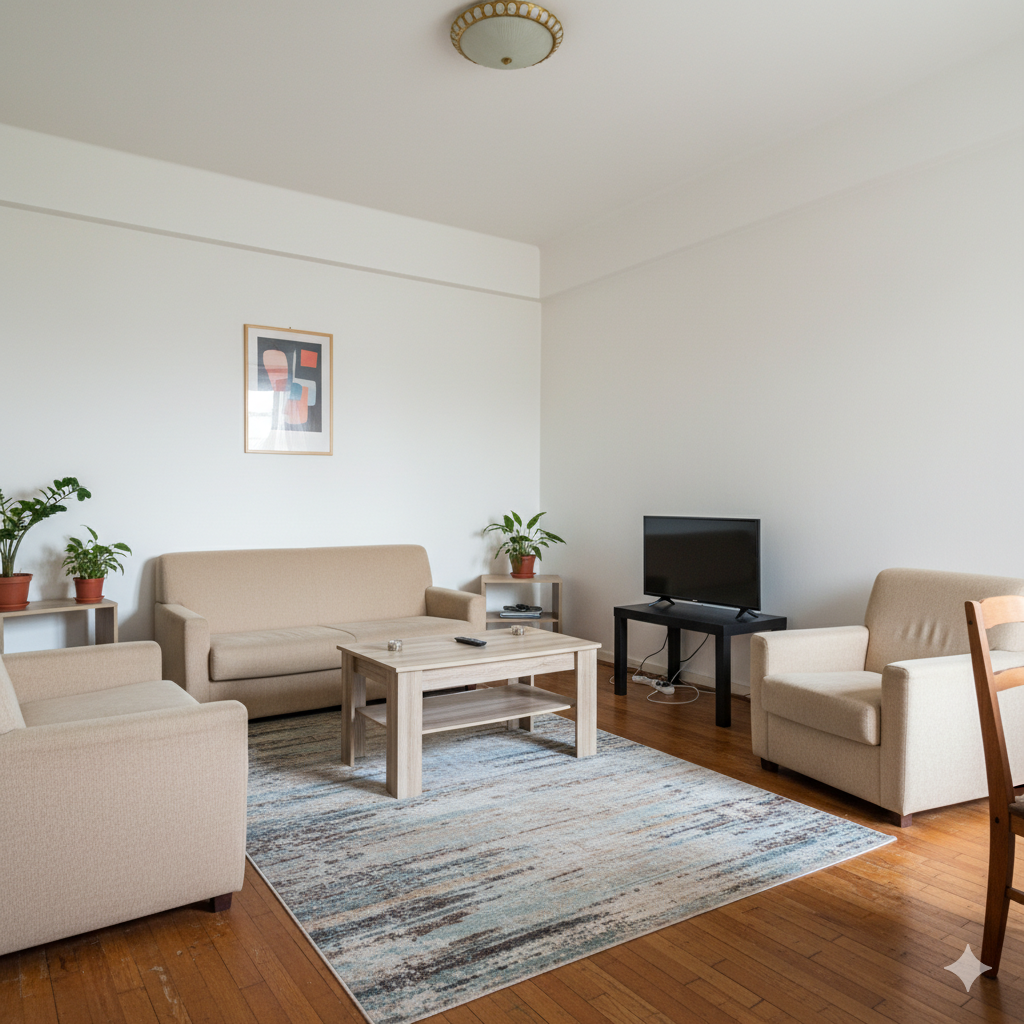 Dramatic transformation: from a dark, cluttered apartment to a bright, minimalist home with natural textures and clean lines.
